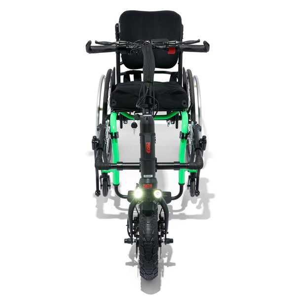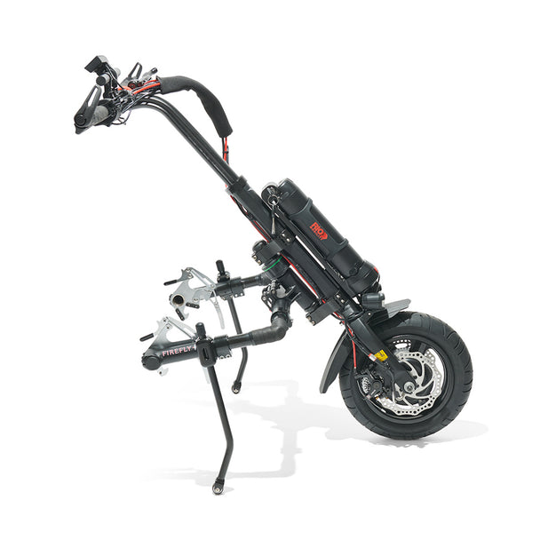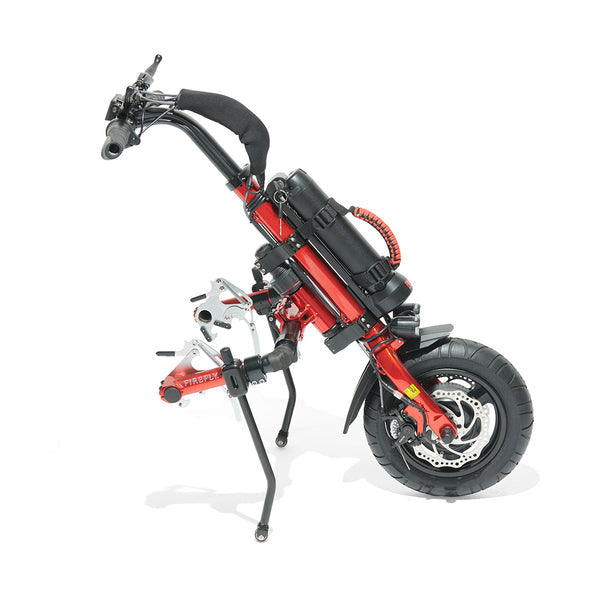 - After the initial installation process is completed, the device latches on and off your wheelchair in seconds.