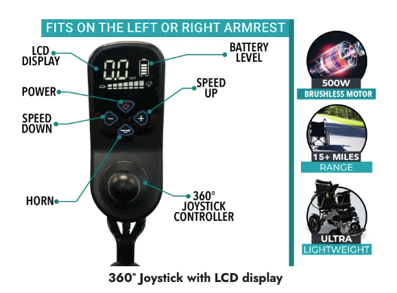Effortless Control: 360° joystick with LCD display for precise navigation.